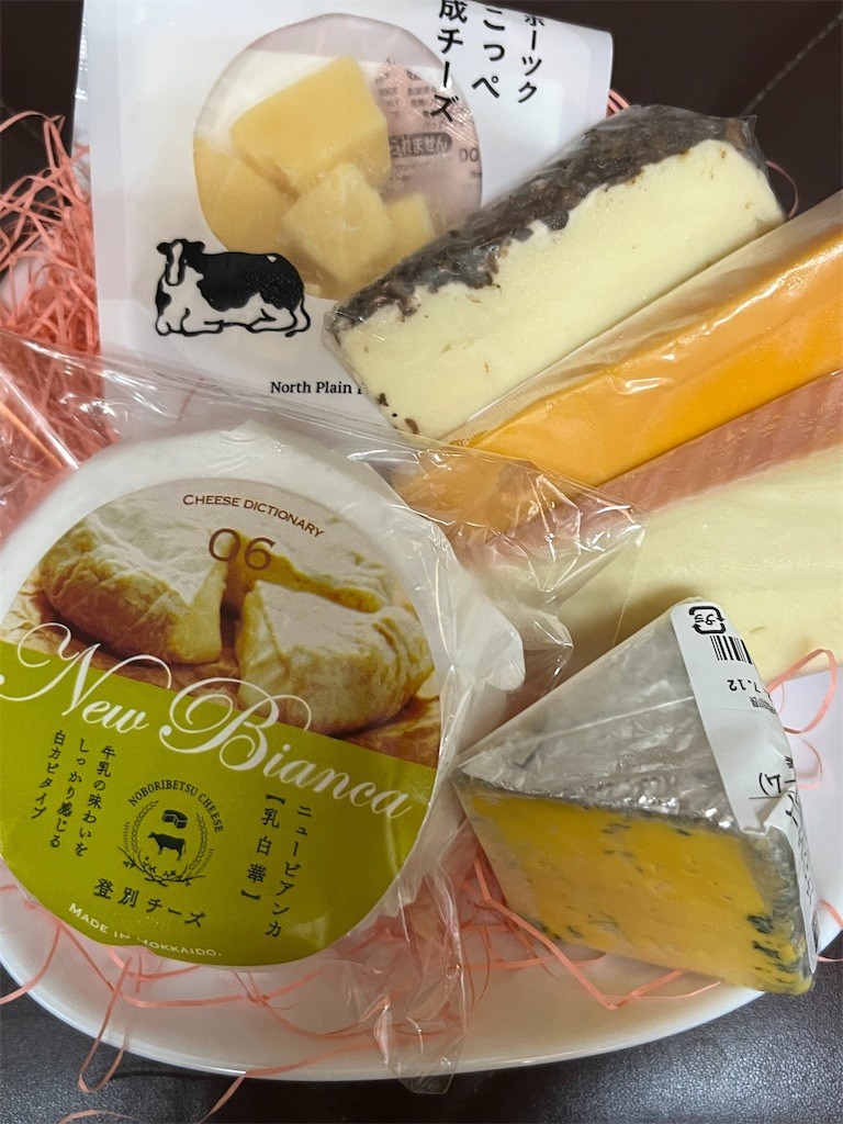 2022-07-02 白ワインと北海道のチーズ 日記 夫がいつも金曜日に、デパ地下で週末に飲む酒を買ってくる。純米大吟醸かワイン。 「北海道のチーズのギフトをいただいたので、今週はワインがいい」とリクエスト。ボトルがきれいだったから、という選択の白ワイン。美味い。ネットで検索しても出てこない。